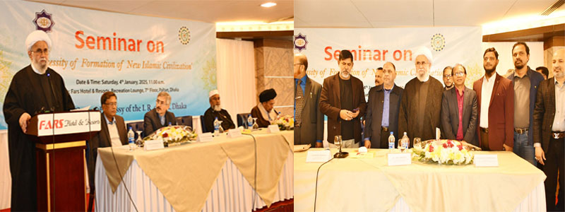 Holiday Post: On the initiative of the Iranian Cultural Center of the Iranian Embassy in Dhaka, a seminar titled 'Necessity of Building a New Islamic Civilization' was organized at the recreation lounge of Fars Hotel in the capital on Saturday (January 4, 2025). Ayatollah Reza Ramazani, Secretary General of Iran's Ahlul Bayt (a.s) World Assembly, was as the chief guest. Ambassador of Iran Embassy in Dhaka Mansoor Chavoshi, Director General of Islamic Foundation Bangladesh Abdus Salam Khan were present as special guests. Vice Chancellor Professor Dr. ANM Meshkat Uddin at Royal University of Dhaka